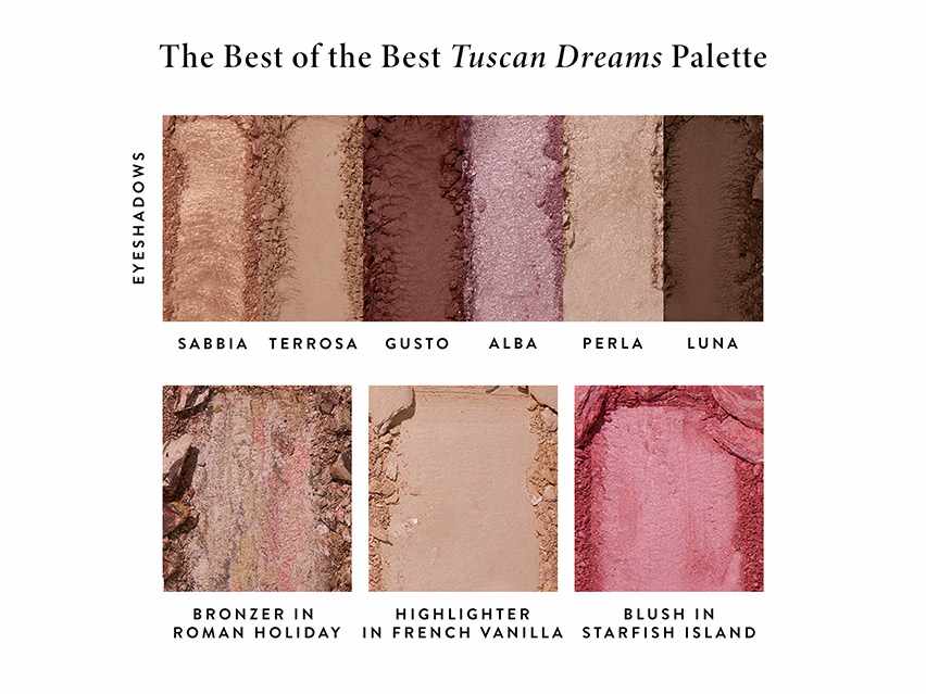 This palette includes nine Italian-made products inspired by a Tuscan getaway. Each was made by baking liquid formulas on terracotta tiles, giving them the convenience of a powder with the texture of a cream. They deliver long-lasting wear for your face, eyes and all over your body.